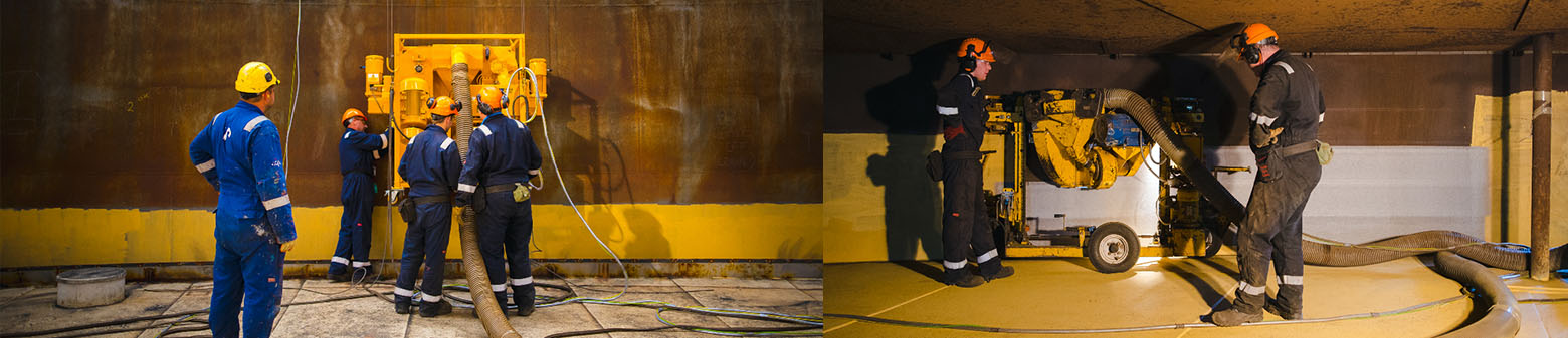 SPE 12E移动式平面抛丸机甲板抛丸施工 |
